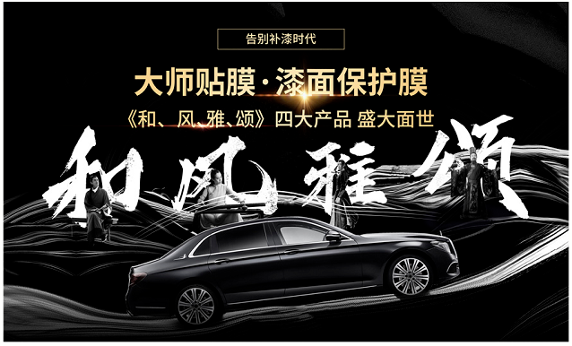 大师携带多元的产品矩阵惊艳亮相:全新的漆面保护膜“和”、“风”、“雅”、“颂”,全系采用全球优质TPU基材,强劲韧性防刺穿划伤性能、微痕热修复性能,出色的抗污性及耐腐蚀性,实力隔绝一切漆面伤害。