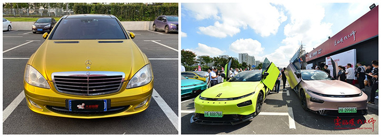 本次活动汇集了各类豪车、跑车、新能源势力的展车方阵。本次开业仪式同时也是大师贴膜MSC高端改色项目的发布会,爆款色如“青雘”、“胭脂虫”,首发新色彩“琉璃”、“紫磨金”等的上车效果都可在现场眼见为实。这个系列的产品全部为与法国合作的定制色,结合中国传统文化中的绚烂色彩和专利哑面电镀工艺,由于电镀光泽强烈,即便哑面处理过也呈现强力的视觉冲击。