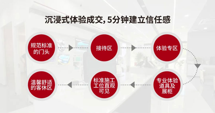 从过去的“生硬的产品展示”,向“沉浸式体验模式”转型!统一标准的门头第一时间吸引客户的眼球,内部设计也是“有灵魂”的,通过不同空间维度的场景体现“曲径通幽”的动线之美,搭配视频、资料、讲解、体验道具等,最大程度增加客户体验趣味、提升门店可逛性。只需短短几分钟,让消费者充分了解产品,建立消费信任感,帮助成交。