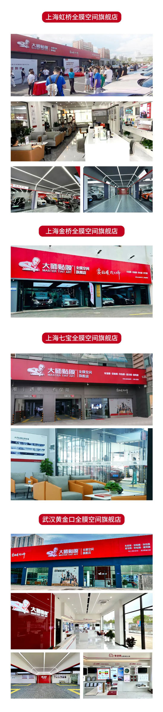 2022年,江苏昆山全膜空间旗舰店、上海金桥全膜空间旗舰店、上海七宝全膜空间旗舰店、武汉黄金口全膜空间旗舰店相继落地,实现从“1”到“N”的跨越。凭借创新的产品力、硬核的品牌力、差异化的运营模式,大师全膜空间旗舰店已成为专业贴膜且持续盈利的行业标杆。