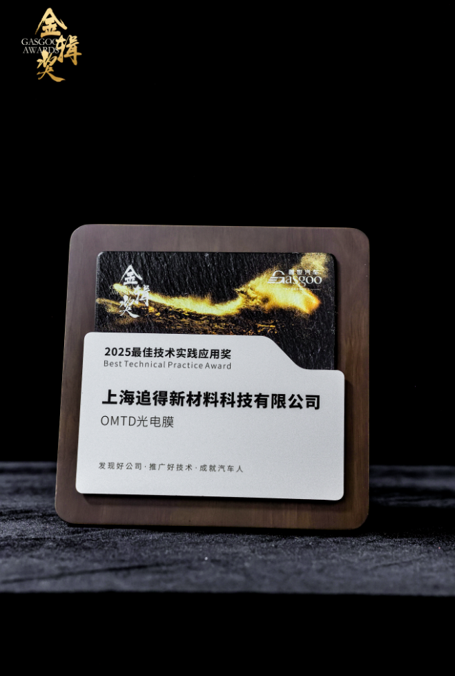 在此背景下,由盖世汽车主办的【金辑奖·2025中国汽车新供应链百强评选】揭晓结果,追得OMTD光电膜凭借其在个性化图案显示、智能控制与车规级量产落地等方面的领先优势,荣获本届金辑奖“最佳技术实践应用奖”。