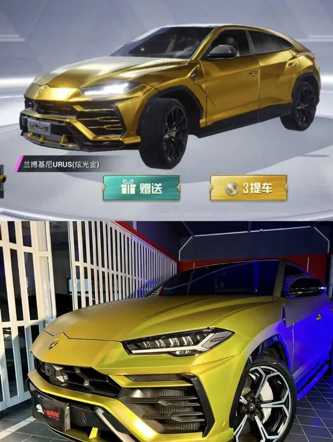 「和平精英贴膜厂」刚营业不久,就有兰博基尼车主过来要把自己的URUS打造成游戏同款炫光金车皮!金牌技师火速为车主安排上了⬇