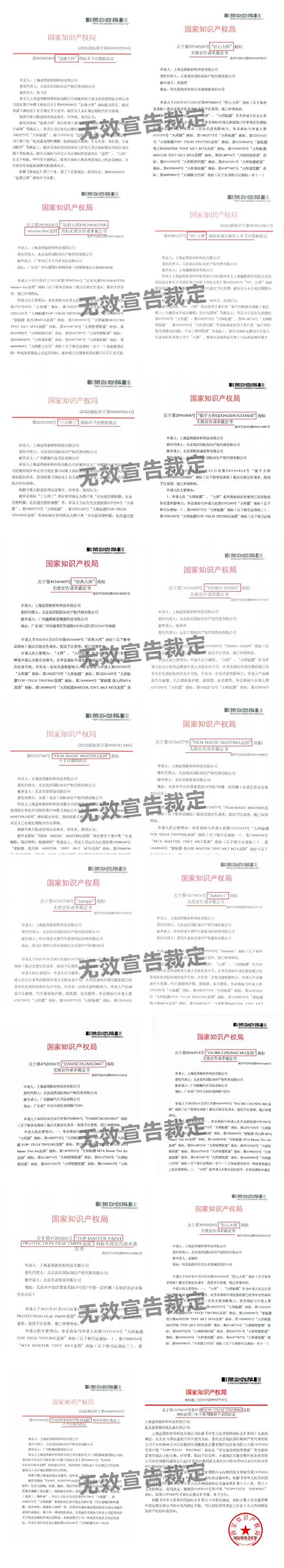 法利大师、匠心大师、贴膜大师 曜烨、强手大师、经典大师、慕凡大师、大师冰盾、璀璨大师傅、璀璨大师、巧匠大师、君匠大师、黄大师、大师战队、大师视窗、潘大师 PAN MASTER、MASTER ZHAO WINDOW FILM、DA SHI CHUANG MO、DASHICHUANGMO、DASHIPPF、TIEMO-DASHI、DASHIFIML、FILM MAGIC MASTERS、TOP MASTER PAINT PROTECTION FILM、BRIGHT MASTER AUTOMOTIVE HEAT INSULATION FILM等26个商标与“大师贴膜”高度近似,恶意攀附“大师贴膜及英文商标”,被宣!告!无!效!