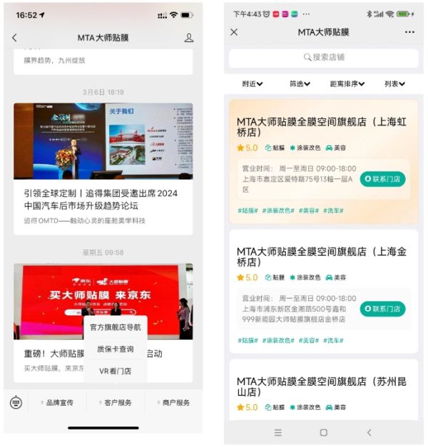 就可以查询到附近的MTA大师贴膜全膜空间旗舰店