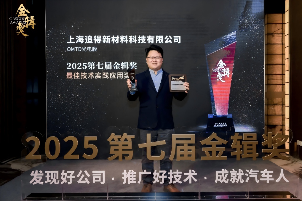 在此背景下,由盖世汽车主办的【金辑奖·2025中国汽车新供应链百强评选】揭晓结果,追得OMTD光电膜凭借其在个性化图案显示、智能控制与车规级量产落地等方面的领先优势,荣获本届金辑奖“最佳技术实践应用奖”。